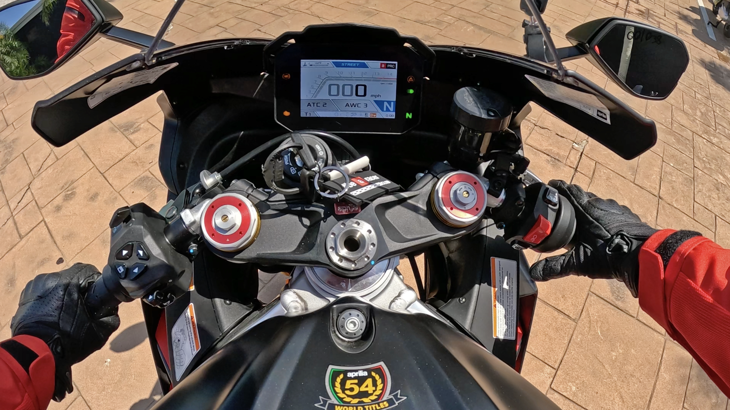 The RSV4 offers 6 riding modes, 3 for the track and 3 for the road. The road mode limits the 1099cc engine to 140 horsepower. This half 'n half design suggests it's a beastly tame superbike—if you want it to be. For this review, I kept it in the "Street" mode of the road option. However, even in road mode, I could customize the engine map, traction control, wheelie control, ABS, launch control, and engine braking, turning this ride from a relaxed coffee run into a Starbucks superbike sprint race.